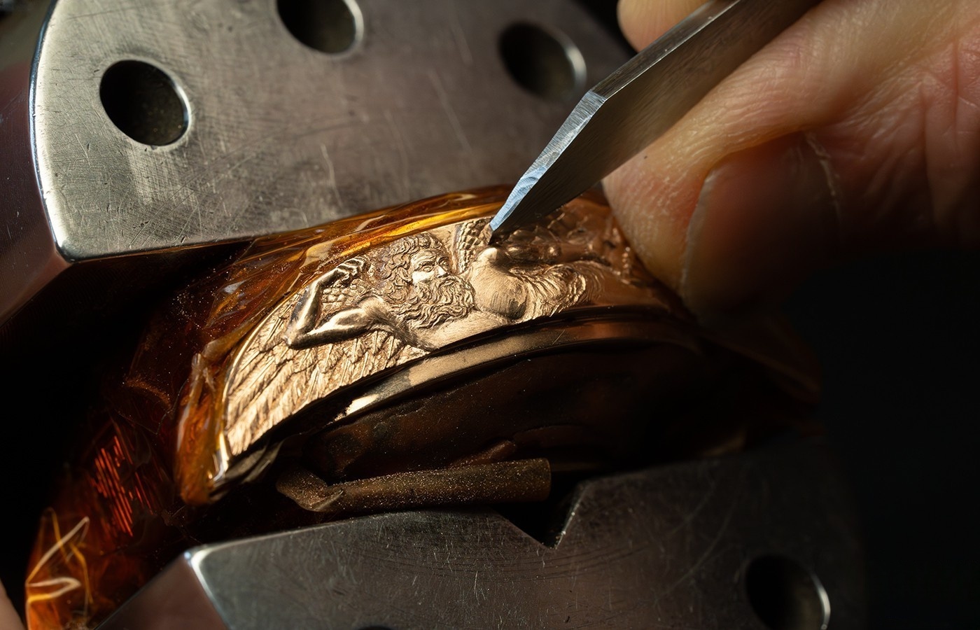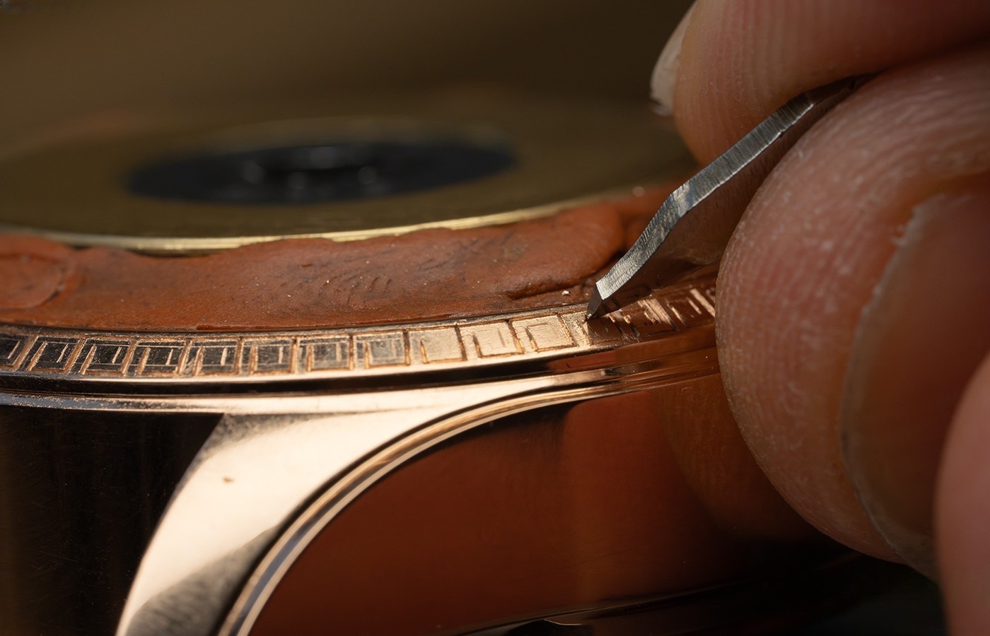 Case | 18K 5N pink gold with hand engraving Diameter: 45 mm |